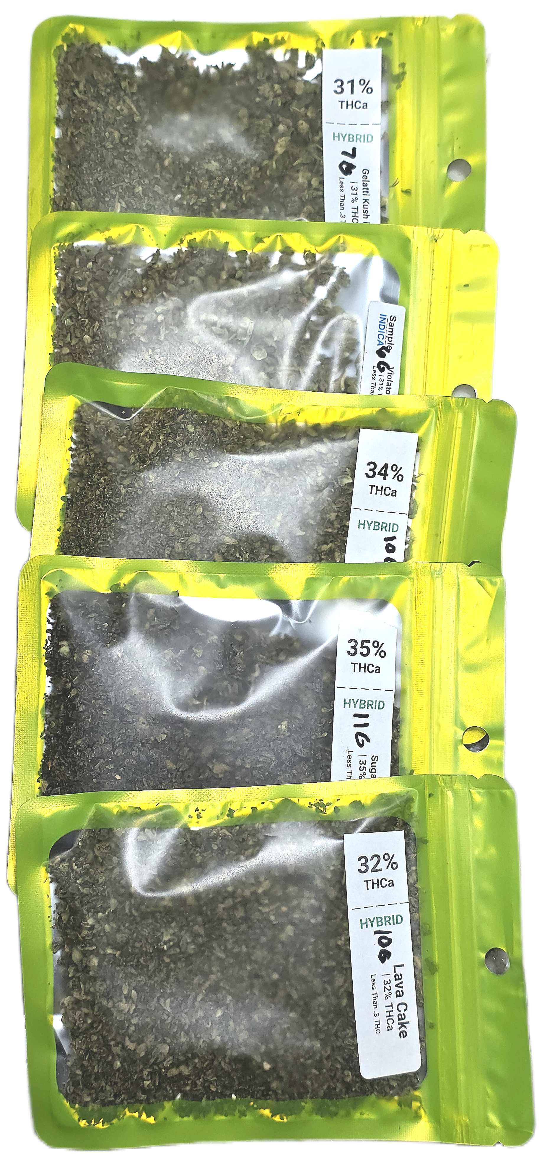 ✨ Strains Included: 10G Lava Cake, 11G Sugar Puss,10G Jet Fuel ,7G Gelatti Kush Mintz, 6G Violator Kush